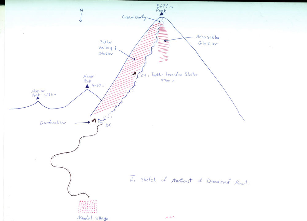 (2700 m). Start off our climb to reach Takht-e Fereidoun refuge at 4400 m
