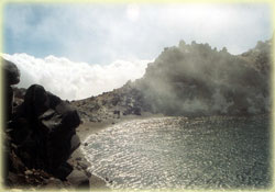 Above Sabalaan peak lies a lake with h300 m, w150 m, and d28 m immensity.